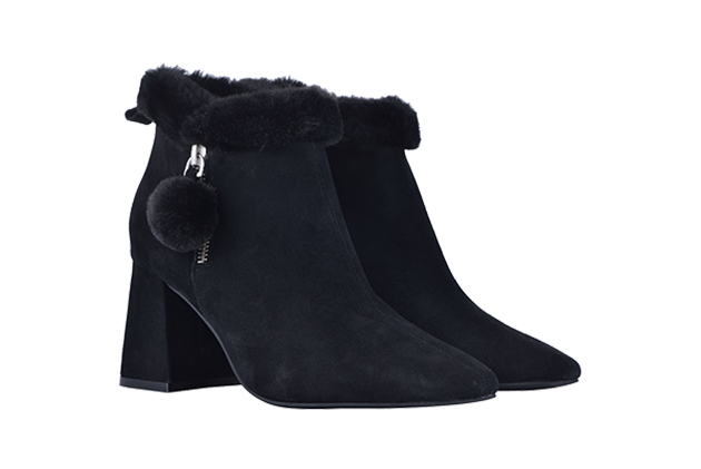 充滿冬季氛圍的時髦短靴,沈穩的黑色搭配小巧可愛的毛球,優雅帶點淘氣,休閒中又兼具時尚,簡單打造高質感穿搭。