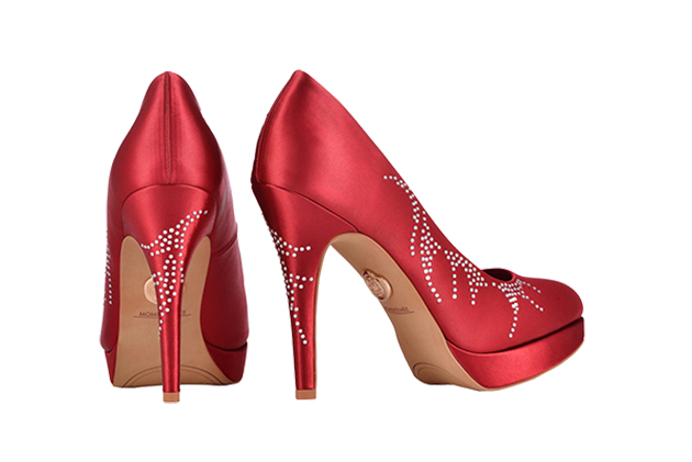 「我們之間多了一條隱形的繩子, 互相使勁拉扯也牽絆對方, 愛上了, 像愛火般紋身,從此人生相互交纏, 就再也離不開。」此款以愛火紋身為主題, 在婚鞋鑲上199 顆頂級施華洛水晶鑽,排成火焰的圖案,以低調的奢華紀念您倆的永恆。